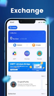 NFT Market: support display and collect NFTs created with ERC721 and ERC1155, also support receive, transfer, and batch transfer. Users can also list and buy NFT on the aggregated NFT Market.