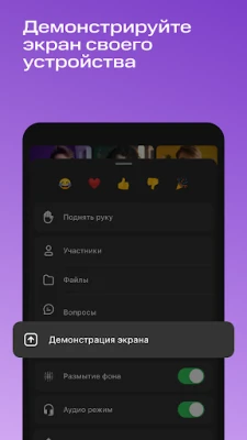 • просмотр документов, слайдов и экранов других участников
