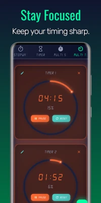 Download Multi Stopwatch Timer and make your fitness, study, and daily routines more efficient and organized.