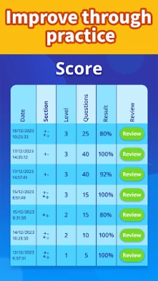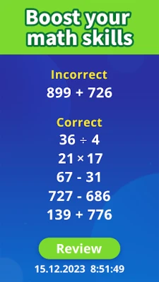 This mode in our math practice app is perfect for fast math training — just like a math speed drill! Solve the problem in your head, then tap the flash card to see the answer; no typing is needed. It's a simple and effective way to sharpen your skills to perfection and train your brain to answer instantly.