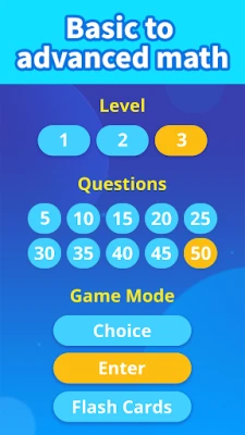 Thanks to a variety of game modes, difficulty levels, a universal design, and simple navigation, this app is great for everyone! From little kids learning 2+2 to grown-ups tackling tricky 3-digit multiplications in their heads, it works for all ages and skill levels.