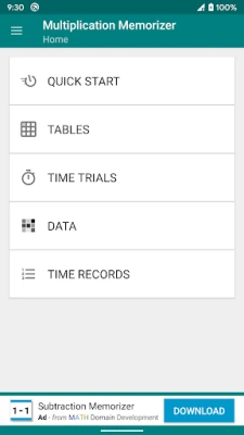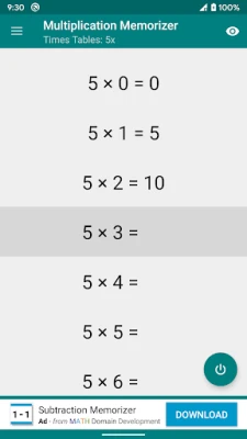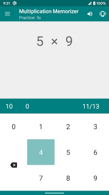 Practice is where your multiplication memorization is tested. Questions are randomly generated. It's your job to enter the answer digit by digit (there is no multiple choice). The number of correct and incorrect attempts are tracked and saved for each multiplication fact. Incorrect problems are listed at the end of each session and you'll have the option to repeat all the questions, repeat only on the incorrect attempts, or shuffle the questions all together.