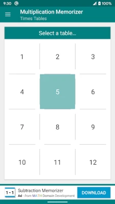 + Provides interactive lists covering each of the 12 multiplication tables.