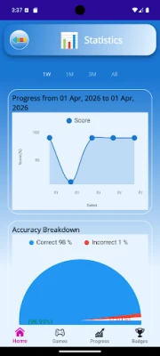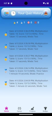 View quiz history and detailed statistics to monitor improvement and identify areas to practice.