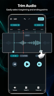Allows you to easily select beginning and ending points. Whether you're crafting a custom ringtone, refining a podcast, or fine-tuning your favorite song, our tool ensures precision without the hassle. With one tap, set the start and end times effortlessly.