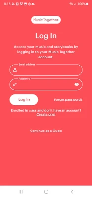• Music Together families, log in with your Music Together account (or create one on the app with the code in your songbook) to get your songs into the app. a