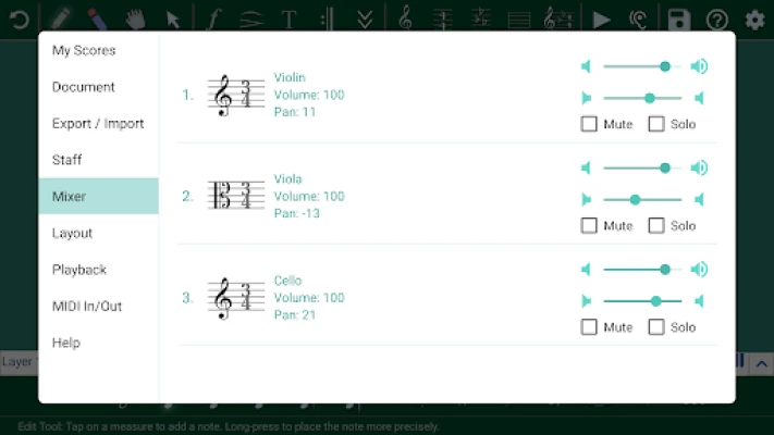 - Set the playback volume on individual staves