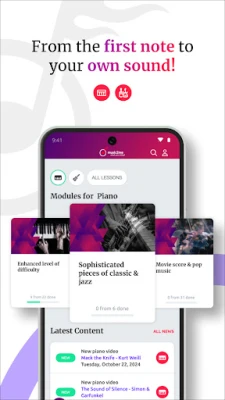 The app is especially popular with newcomers and those who want to return to their instrument after a longer break and need to be able to schedule their learning units flexibly. The music2me app is also ideal as a supplement to classic private lessons.