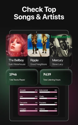 Instantly check your listening history, discover how much time you’ve spent with your favorite tracks, and explore hidden details about your music library.