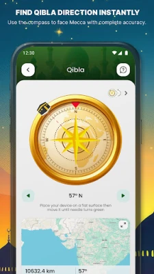 - Instantly locate the Kaaba location in Mecca using a precise digital compass.
