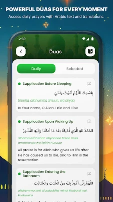 - A complete list of authentic daily duas for every occasion β morning, travel, forgiveness, sleep, and more.