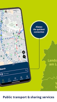 • Live map: Our map shows you the current position of buses, trains and additional mobility services (scooters, hire bikes, car sharing) for a flexible route planning.