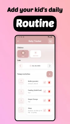 EFFORTLESS DAILY TRACKING Quick-add common events like feedings, diaper changes, sleep, and milestones. Build a daily routine without friction and see your baby's patterns emerge naturally.
