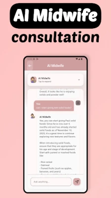 AI MIDWIFE - YOUR 24/7 PARENTING GUIDE Got questions? Ask our AI Midwife up to 60 questions per month. From feeding schedules to sleep tips, get instant, thoughtful guidance whenever you need reassurance.