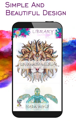 - Color up wild animals, sea creatures, birds, mandalas and more