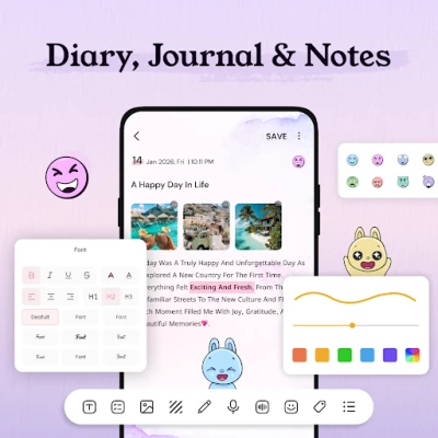 My Diary: Daily Journal, Notes app provides a private and secure space to write your personal thoughts, emotions, and daily notes with complete peace of mind. With strong password and fingerprint protection, your memories stay safe while you express yourself freely. Designed to be Easy, elegant, and comfortable, the app is ideal for everyday journaling and note-taking.