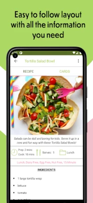 - Filter recipes not only by meal type but also by specific diets such as dairy free / gluten free / egg free and nut free.