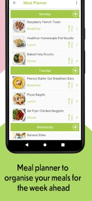 - Meal planner function allows you to plan breakfast, lunches, dinners and snacks for the entire family for a whole week.