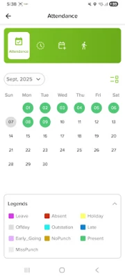 * View your daily status of attendance on calendar.