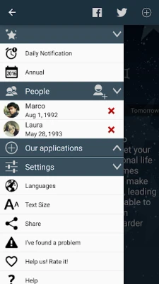 Get your horoscope or that of your friends as a daily PUSH Message at a requested time !