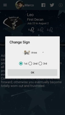 Detailed astrological predictions available for all of the zodiac signs and their 3 decanates