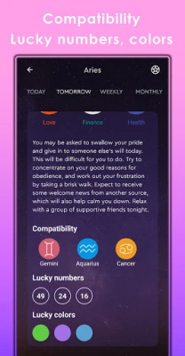 ✔ Daily horoscope (including tomorrow's horoscope)