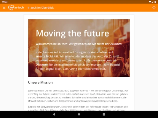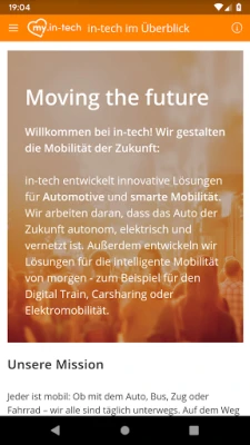 Aktuelle Informationen und Neuigkeiten für unsere Kunden, unsere Partner, sowie Mitarbeiter und Interessierte. Bleiben Sie mit uns in Kontakt und erfahren Sie mehr über in-tech. my.in-tech bietet Ihnen die Möglichkeit, über aktuelle Neuigkeiten, interessante Projekte, Termine und vieles mehr rund um in-tech informiert zu bleiben - mobil, schnell und aktuell. • News: bleiben Sie auf dem neuesten Stand mit den aktuellsten Neuigkeiten. Durch Push Notifications sehen Sie sofort, was es Neues bei in-tech gibt. • Karriere: Aktuelle Informationen über offene Stellen und Karrieremöglichkeiten • Für Nutzer der App ist es die komfortabelste Möglichkeit, immer up-to-date zu sein