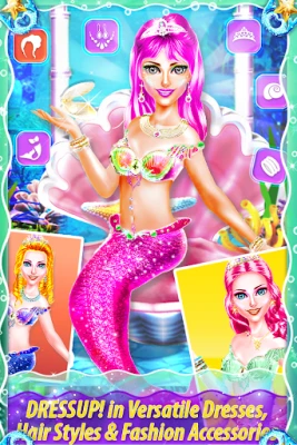 Restore the purity and beauty of deep sea so that the trapped fish can live in healthy clean water.Help beautiful sea princess by doing real mermaid makeup in an enchanting underwater makeup spa salon.Do some sparkle magic spa & dress up her in fashionable sparkly vibrant dresses so that she can impress her prince charming. choose from wide range of expensive fashion closet and style mermaid to dressup & look pretty for handsome prince.