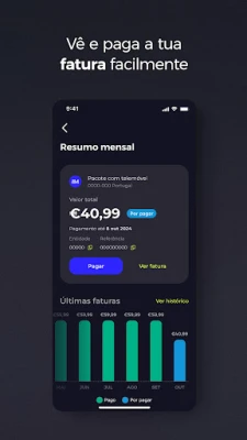 Consulta as tuas faturas e mantém tudo organizado num só sítio. Ativa o débito direto ou paga, de forma segura, diretamente na app.