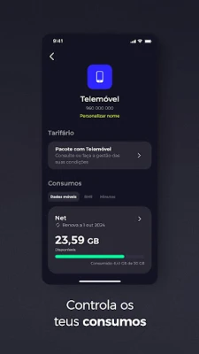 Em qualquer momento, sabe o que o que tens disponível, o que já consumiste e qual a data de renovação dos teus plafonds de net, SMS ou minutos. Define os limites para gastos extra à tua mensalidade e quais os serviços que queres ter ativos