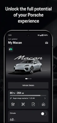 The My Porsche app is the ideal companion for your Porsche experience. Call up the current vehicle status at any time and control Connect services remotely. The app is constantly being developed and additional features will be added in the next versions.