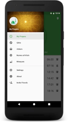 • Switching the phone to silent automatically during prayer times, with settings for each prayer.
