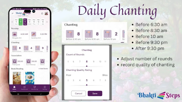 Sadhana Record App is a thoughtfully designed spiritual companion that helps you track, organize, and grow in your personal sadhana practice. Inspired by the teachings of HDG A.C. Bhaktivedanta Swami Śrīla Prabhupāda and blessed by HH Jayapatākā Swami Mahārāja, this app offers a simple yet powerful way to stay consistent and conscious in your devotional life.