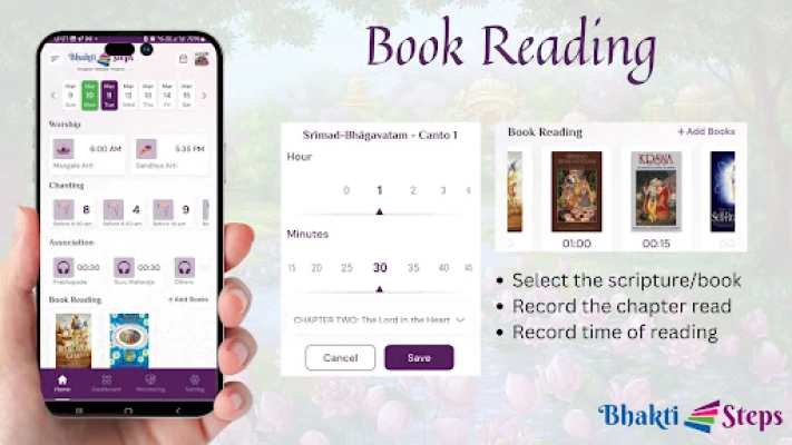 🔸 Scripture Reading - Log your book reading, including scripture name, chapter, and reading time.
