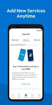 • Add Spectrum Mobile or upgrade your Spectrum TV and Internet services in the app.