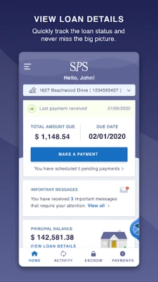 My SPS mobile app is a fast, secure way to manage your mortgage account 24/7. Make payments, set up and make changes to monthly auto draft, view statements, and review escrow information.