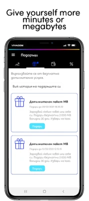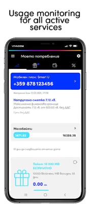 Sign in with your VIVACOM mobile number or enter an email and password. If you sign up for the first time, you will receive a confirmation SMS. On the Home screen, you'll see the current status for the mobile service you're using. Check remaining minutes, MB or SMS any time. You can activate and deactivate a roaming service and add more minutes, MB and SMS to your mobile plan. You have access to a list of all your services. No more overdue bills! The application informs you in time. You can pay with a few clicks. You have an archive of your accounts and quick access to invoice downloads.