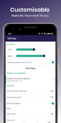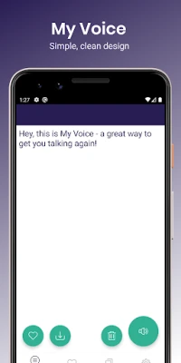 My Voice, a simple Text To Speech (TTS) app, helps you to find your voice again. Simply enter your desired text, and let My Voice speak it aloud for you, using your chosen Text To Speech (TTS) engine.