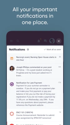 Receive updates when grades are published, assessments are due and announcements are posted.