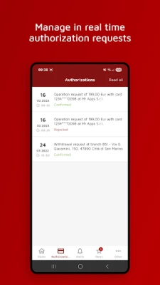 Authorizations You can receive real time authorization notifications from the bank to login the Web Banking service or to complete an e-commerce payment with your credit card. You can confirm the authorization notifications using a security PIN or using digital print technology or facial recognition technology if allowed by your device