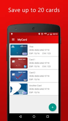 Save you card track data and pay in shops with contactless card readers using your mobile phone.