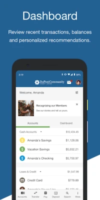 The DuPont Community Credit Union Mobile App provides secure, convenient, around-the-clock access to your account information. Save a trip to the branch by managing your finances from your mobile device.