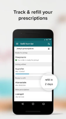 Refill you and your family's prescriptions View all your prescriptions in a list along with prescription number, dosage, quantity, fills left and expiration. You can also quickly scan the label on your prescription bottle to order a refill instantly.