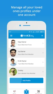 ## The app also allows you to manage your MyICETag Profiles and link with your MyICETag bracelets, sticker, or other MyICETag products to provide emergency info when you don't have your phone with you.