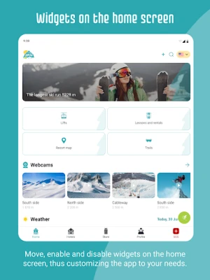 Some information is presented in the form of widgets on the main screen, which can be moved, activated, and deactivated, thus customizing the application to suit your needs. In case of emergencies, the application includes an SOS button to call the resort's emergency services.
