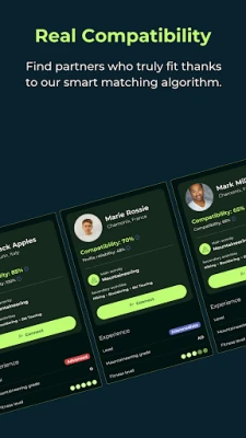 See suggested partners ranked by how well your profiles align, not by proximity alone.