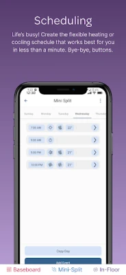 Scheduling: Life's busy. Create the flexible heating or cooling schedule that works best for you in less than a minute. Bye-bye, buttons!