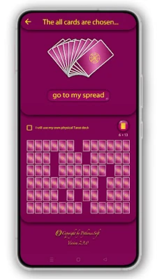 - Possibility to choose the Tarot cards using your own real Tarot deck and to interpret by Mysterious Tarot app.