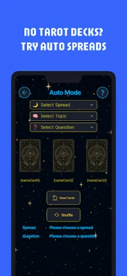 - Auto Tarot Reading: No deck? No problem! Let the app draw cards for you and instantly receive AI-generated guidance and predictions.