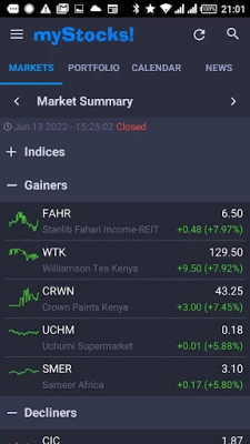 Trade equities at the Nairobi Securities Exchange and keep track of your investment with world-class portfolio tracking tools. Get instant access to comprehensive market data, historical data, and company financials spanning over 17 years. Get ahead of the crowd with market-moving business news headlines from Kenya's most trusted sources.